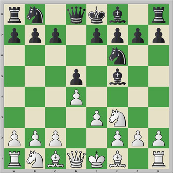 Se trata de una línea estándar en la que las negras han jugado ...Ae7, una jugada que algunos autores (Smith&Hall) dicen explícitamente que es mala para el Negro, mientras que otros indican implícitamente que no es crítica, ya que no es la línea "principal".