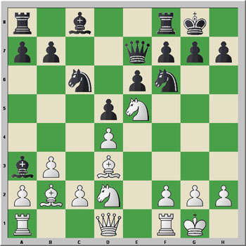 Ahora es bastante difícil que Sadler pueda encontrar una mejora de este último movimiento con un 10...Af5! Pero, vamos con la jugada del texto, que es, según nos dicen, probablemente inferior, y con esto termina la teoría establecida en esta línea. A partir de aquí, tanto Lane y Summerscale muestran múltiples ideas para las blancas.