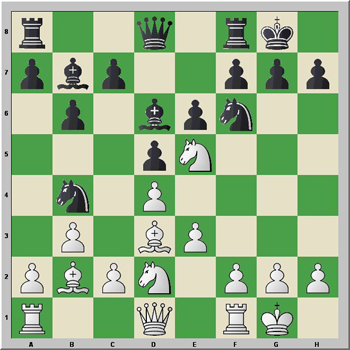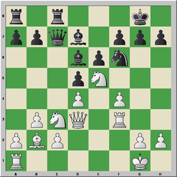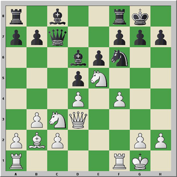 This is where Black falters. He has to play 17...Ce4!, highlighting White's fa ilure to protect c2 on his 16th move.